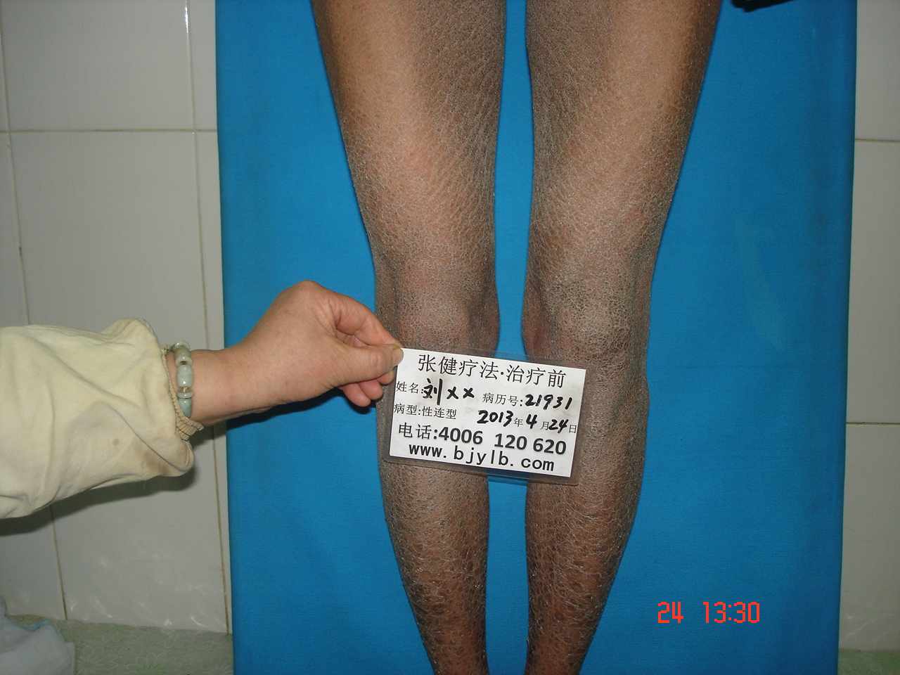 周先生,男,28歲,患魚(yú)鱗病20多年,久治不愈。2013年1月,來(lái)到張建療法接受治療,八天后,周先生身上的鱗屑全部脫落,皮膚光滑滋潤(rùn),