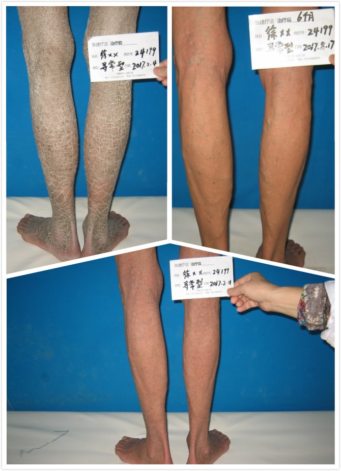 性別:男 民族:漢族 出生地:河北 主訴:全身肌膚干燥,粗糙呈蛇皮樣,身上四肢鱗屑多,使用軟膏類藥物未見效果。