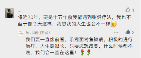 我們前前后后治療了3萬(wàn)多魚(yú)鱗病患者朋友,大家治完后反饋都不錯(cuò),有的治完已經(jīng)有11年了,鱗屑也沒(méi)有復(fù)發(fā)過(guò),皮膚比同齡人看著還好。