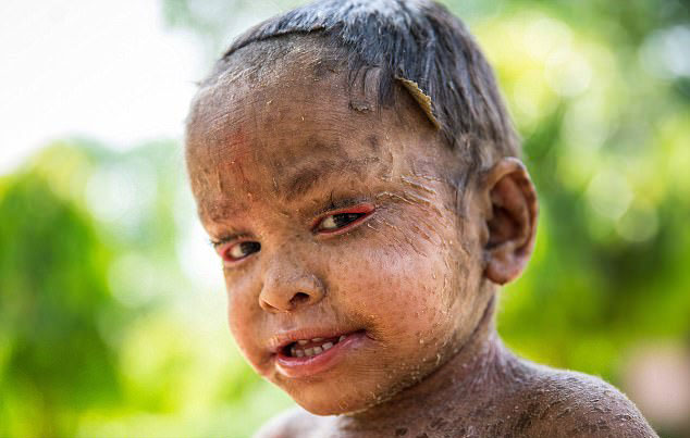 這是一種較為罕見且嚴重的類型,嬰兒出生時全身可能包裹著一層厚厚的鱗屑,隨后這層膜脫落,皮膚表面出現(xiàn)厚重的棕色鱗屑,皮膚顯得非常堅硬。此類型還可能伴有眼瞼、嘴唇外翻等并發(fā)癥。(附上板層型照片)