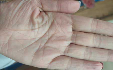 魚鱗病是一種罕見的遺傳性角化病,主要為某些特殊基因突變所導(dǎo)致,其癥狀是表皮過度角化導(dǎo)致角質(zhì)過多堆積,表面呈現(xiàn)鱗屑樣,而肉眼觀察則像是魚鱗一樣。這種角化病會引起皮膚干燥、瘙癢、脫屑等不適感,并且容易導(dǎo)致繼發(fā)性細菌感染或者黑色素瘤的產(chǎn)生。當然,由于其癥狀鮮明,還是很容易區(qū)別于掌紋多而亂的現(xiàn)象的。