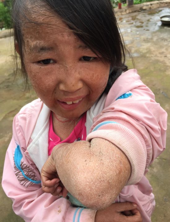 小何,一位來自云南省永興鄉(xiāng)的八歲女孩,因出生便患有魚鱗病,導(dǎo)致導(dǎo)致生活及學(xué)習(xí)中都存在諸多不便,小何的父母看在眼中記在心里。小何的父母都在家務(wù)農(nóng)。靠著種菜與養(yǎng)殖為生,而且小何還有個(gè)哥哥也剛上初二,小何家屬于貧困中的貧困戶。