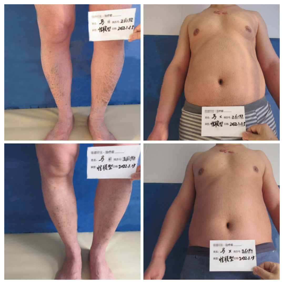 所以說,治好魚鱗病后一定要遵從醫(yī)囑,保證皮膚的水潤度,這樣皮膚就會長期柔軟,沒有斑紋啦。