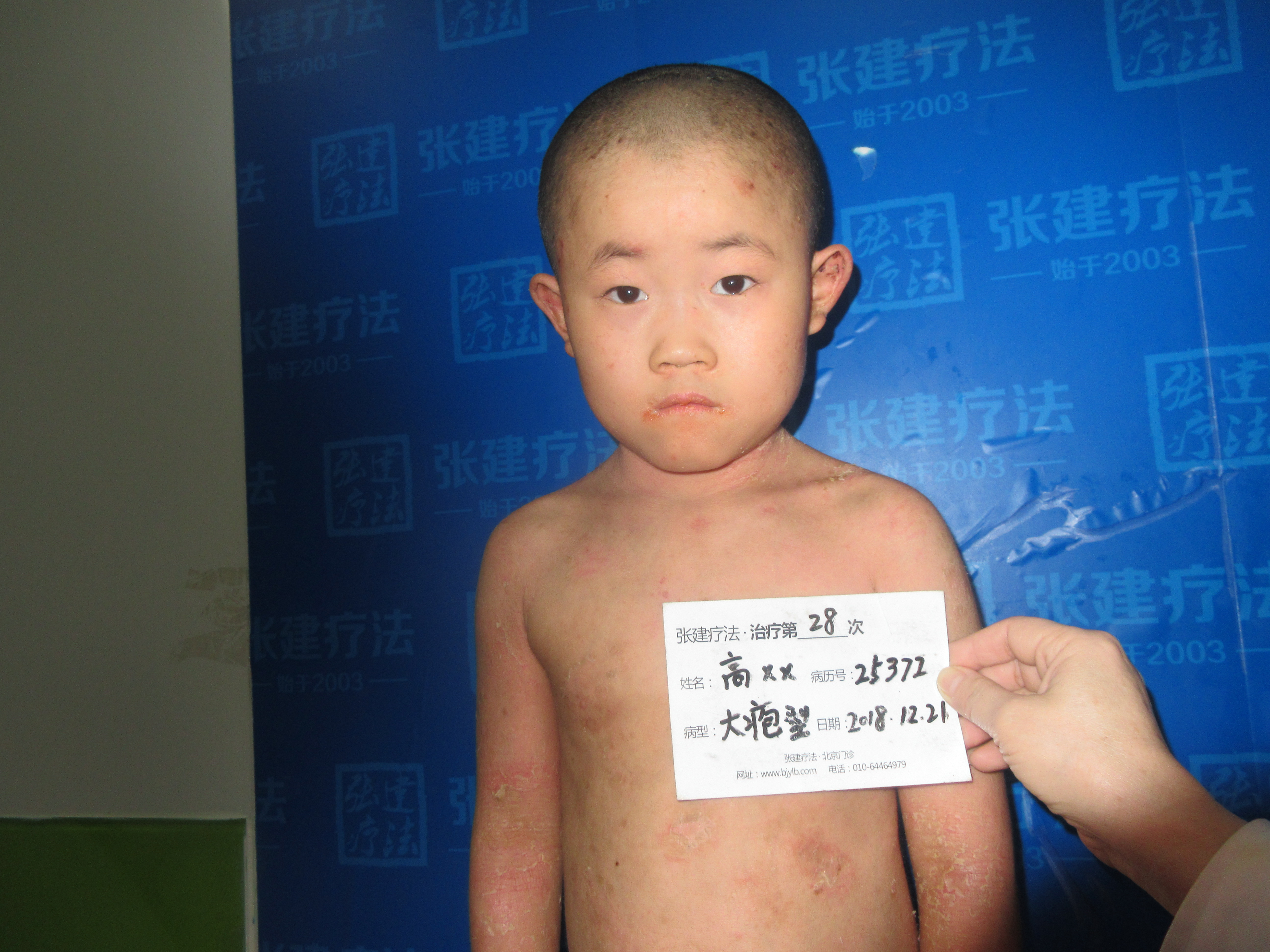 “張建療法”的醫(yī)生很熱情的和樂樂媽媽分析了樂樂的病情,魚鱗病一般冬天嚴(yán)重夏天減輕,但是癥狀減輕不代表魚鱗病好了,所以不能掉以輕心,樂樂的病情屬于重度尋常型魚鱗病,通過擁有中美雙專利權(quán)威認(rèn)證的“張建療法”中藥熏蒸配合獨(dú)家配方研制的護(hù)膚品,就可以治好魚鱗病,并且保障終身不復(fù)發(fā),樂樂媽媽果斷選擇了治療。