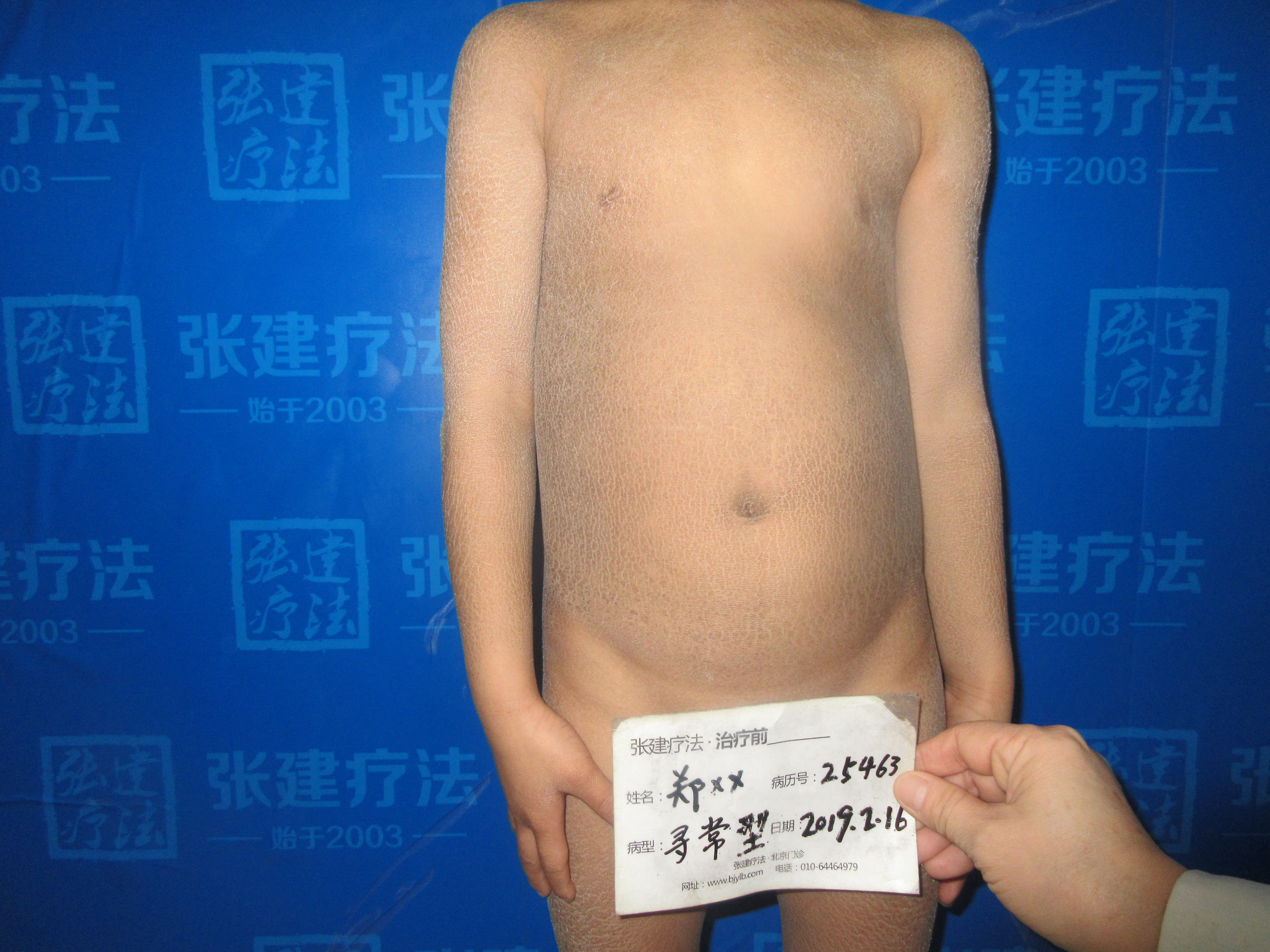 沒有,小劉易什么事情都沒有做錯,錯的只是沒有及時積極治療魚鱗病,這個就是他的家長問題,其實最開始幫助小劉易接觸張建療法的正是他的表舅,因為他們家的魚鱗病是家族遺傳的,他表舅也有魚鱗病的癥狀,也是飽受了多年的魚鱗病困擾,后來參加工作了一個工友的介紹,來張建療法治療了一個月左右,病情明顯的好轉(zhuǎn),目前已經(jīng)完全康復(fù),已經(jīng)七八年沒有復(fù)發(fā)過了,結(jié)婚生子和正常人一模一樣,完全看不出魚鱗病的痕跡。
