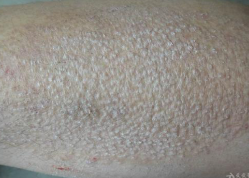 1、毛周角化癥:汗毛長(zhǎng)不出來(lái),卷縮在毛孔里就會(huì)形成角化栓;